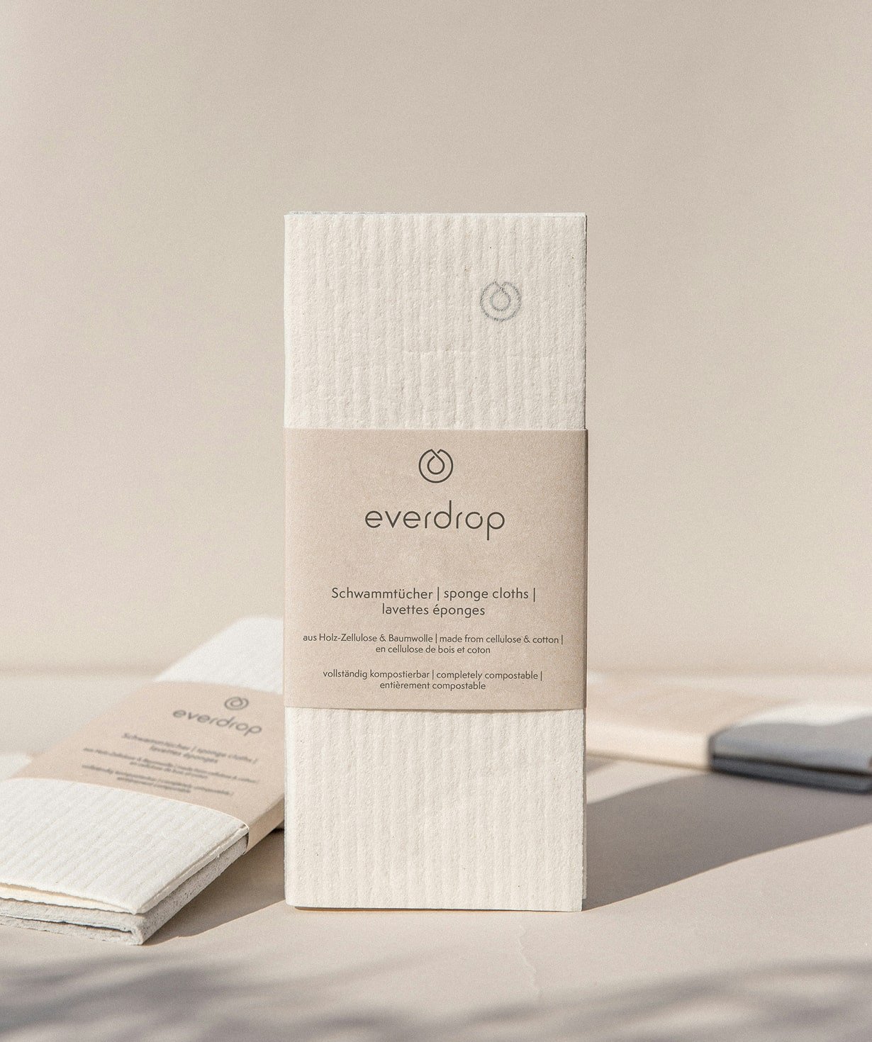 These eco-friendly sponge cloths by Everdrop are made from wood cellulose and cotton, offering high absorbency and full compostability. Ideal for sustainable cleaning in the kitchen or around the house.